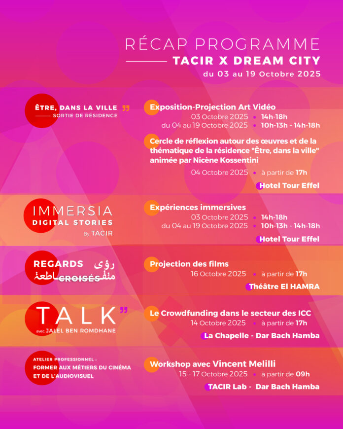 يشارك برنامج تسير، الذي تنظمه جمعية الملتيميديا والسمعي البصري (AMAVI)، في مهرجان دريم سيتي 2025 ليقدّم