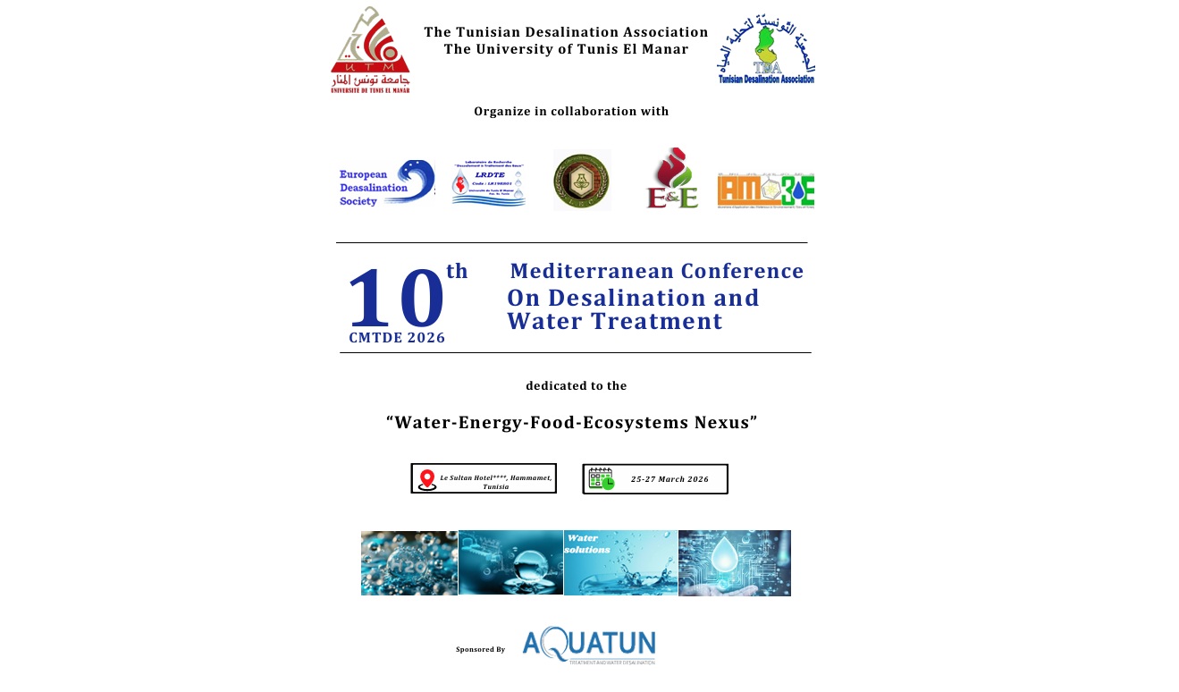 ينتظم هذا الحدث تحت إشراف وزارة التعليم العالي والبحث العلمي ووزارة الفلاحة والموارد المائية والصيد البحري، وبالتعاون مع الجمعية التونسية لمعالجة وتحلية المياه (TDA) والجمعية الأوروبية للتحلية (EDS).