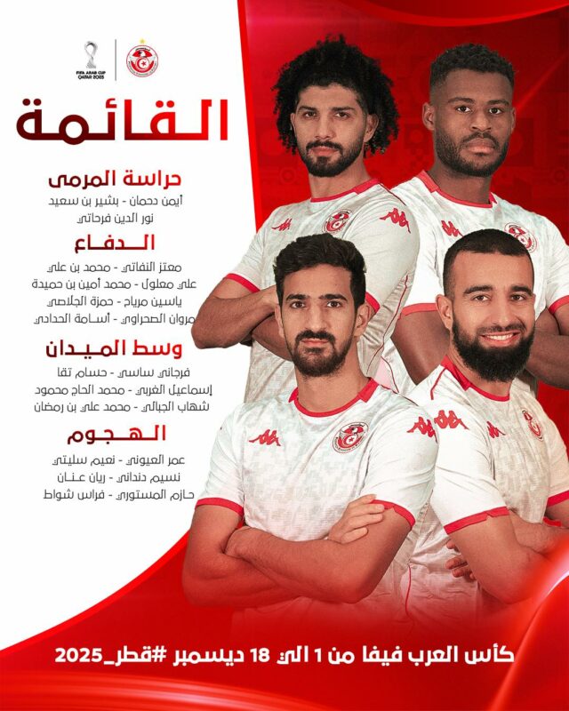 قائمة لاعبي المنتخب الوطني لتونس في كأس العرب 2025