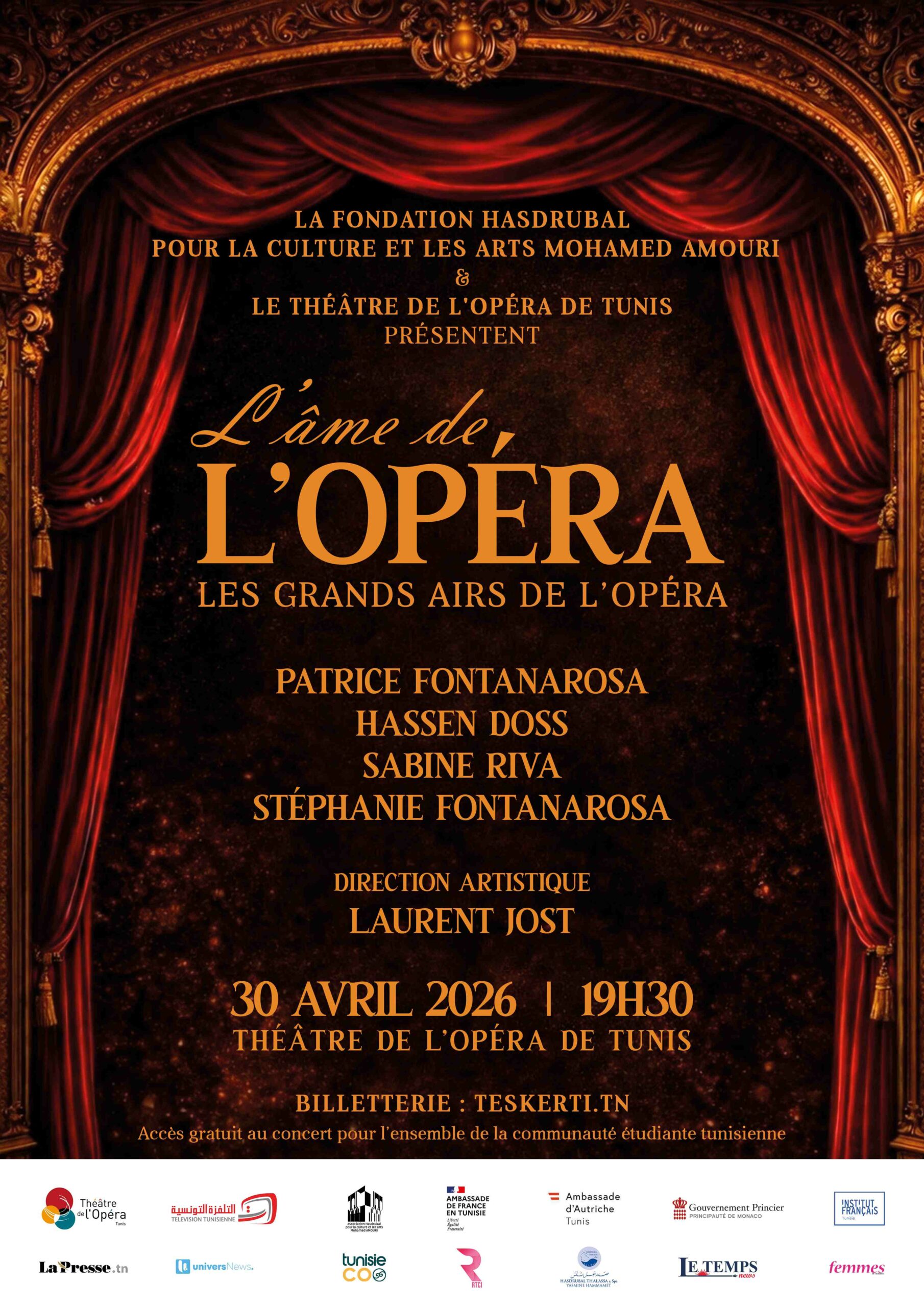 تقدّم مؤسسة صدربعل للثقافة والفنون محمد العموري، بالشراكة مع مسرح أوبرا تونس، عرضًا مميزًا بعنوان «روح الأوبرا – أشهر مقطوعات الأوبرا»، وذلك على يوم الخميس 30 أفريل على خشبة مسرح أوبرا تونس، في حفل استثنائي صُمّم كعودة إلى جوهر الفن الأوبرالي.